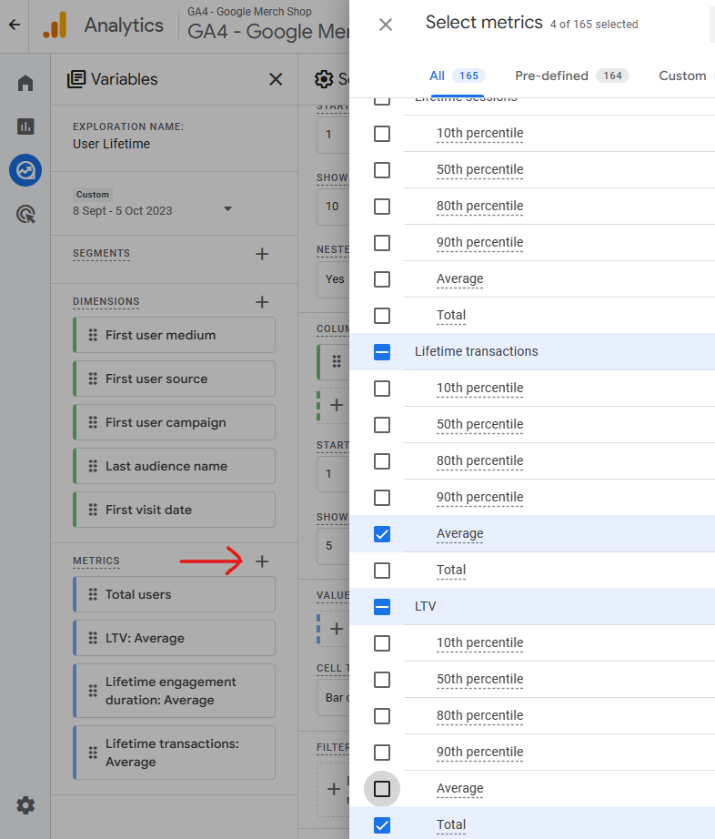 Some Other Settings for GA4’s User Lifetime Exploration